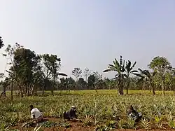 The cultivation of pineapples in Bangladesh was initiated in 1942 by Mizi Dayamai Sangma, a member of the small indigenous Garo community in Idilpur village of Madhupur Upazila.[3] He visited his relatives in Meghalaya, India, and brought back 750 pineapple saplings to start a pineapple plantation at his own home.[4]