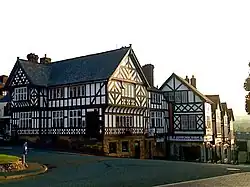 Maen Huail is a stone block at St Peter's Square, in the centre of Ruthin, Denbighshire, North Wales. A circular plaque next to it states "Maen Huail on which tradition states, King Arthur beheaded Huail, brother of Gildas the historian". The stone was recorded in 1699 as being in the middle of the road,[1] and now stands on a concrete plinth against the half-timbered wall of the Barclays Bank building, a 20th-century copy of the now mainly destroyed Exmewe Hall.[2]