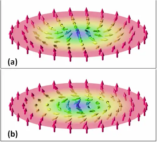 - ^ Bogdanov A, Hubert A (1994). "Thermodynamically stable magnetic vortex states in magnetic crystals". J. Magn. Magn. Mater. 138 (3): 255–269. Bibcode:1994JMMM..138..255B. doi:10.1016/0304-8853(94)90046-9.