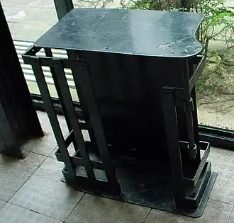 Construction was complicated as the building had to be completed without disturbing a tenant on part of the site.[3] The building was built on the site of a much older building that the patron had purchased and intended to demolish. Much to his or her chagrin, however, the elderly tenant on the top floor of the building absolutely refused to sell, and so the patron was obliged to completely demolish the bottom three floors of the building and construct the Maison de Verre underneath, all without disturbing the original top floor.