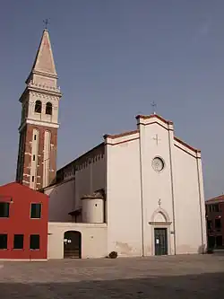 In the square outside the church, Campo della chiesa, there are two Venetian wells with high reliefs of the lions of St. Mark's and a 15th-century building, which was the Residenza della Deputazione Comunale, also has a high relief of the lion. There is a monument in hexagonal form with the Pisani family’s coat of arms. The Pisani governed Malamocco around the middle of 1537.[6][7]