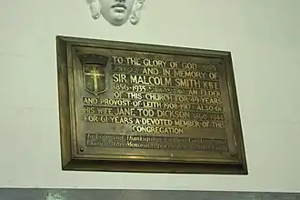A memorial to Smith and his wife also exists in the south aisle of South Leith Parish Church.