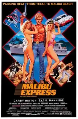 Malibu Express is a 1985 American action film starring Darby Hinton, Sybil Danning, Lori Sutton, and Art Metrano. It was directed, written, and produced by Andy Sidaris and is the first installment in the Triple B film series.[1] The film features 1980s Playboy Playmates Kimberly McArthur, Barbara Edwards, Lorraine Michaels, and Lynda Wiesmeier in its cast, as well. In it, Danning "cinched her image as B-budget bad girl".[2] Regis and Joy Philbin cameo as talk-show hosts.[3]