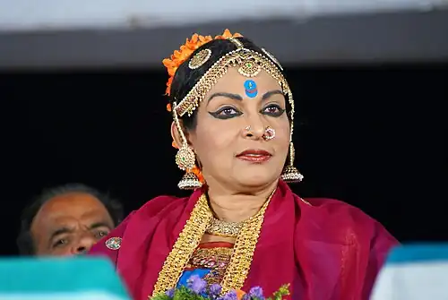 Mallika Sarabhai is an Indian classical dancer, activist and actress from Ahmedabad, Gujarat, India. Daughter of a classical dancer Mrinalini Sarabhai and space scientist Vikram Sarabhai, Mallika is an accomplished Kuchipudi and Bharatanatyam dancer[1] and performer who has specialized in using the arts for social change and transformation.