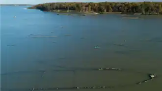 Hydrilla is a genus of aquatic plant native to Africa, Asia, and Australia[27][28][29] which has become a naturalized invasive species in the United States.[30] Introduced into the Potomac River in the 1970s and 1980s, it has been found to have beneficial effects in the Chesapeake Bay, where it is protected.[25] However, it is dominant in the Mallows Bay–Potomac River National Marine Sanctuary's waters, where it can grow very thickly, block sunlight, and crowd out native plants,[25] as well as obscure submerged historical resources.[23]