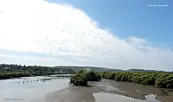 The Mandovi (IPA: Konkani pronunciation: [maːɳɖɔwĩː]) or Mahadayi (IPA: Kannada pronunciation: [məɦəd̪ɑːji]), formerly known as the Rio de Goa,[1] is a river described as the lifeline of the Indian state of Goa. The Mandovi and the Zuari are the two principal rivers in the state of Goa. The Mandovi joins the Zuari at a common creek at Cabo Aguada, forming the Mormugao harbour. Panaji, the state capital and Old Goa, the former capital of Goa, are both situated on the left bank of the Mandovi.