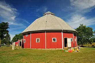 Maria and Franklin Wiltrout Polygonal Barn, also known as the Alfred Barn, is a historic 14-sided barn located in Fairfield Township, DeKalb County, Indiana. Built in 1910, the structure is a two-story, wood-frame structure measuring 60 feet in width. It is topped by a two-pitch gambrel type roof with a 14-sided cupola. It is one of three 14-sided barns left in Indiana.[2]: 2