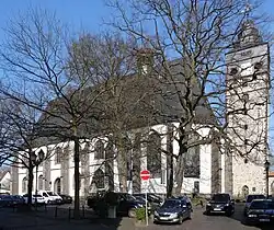 The Marienstiftskirche is a Lutheran three-aisled hall church in Lich, Middle Hesse, Germany. It was built between 1510 and 1537, making it the last Late Gothic hall church to be built in Hesse.[1] The architectural style straddles the transition between Gothic and Renaissance. It is a Hessian heritage site and contains objects of national art historical significance.[2] The neighbouring Stadtturm, with its historic triple peal serves as a clocktower for the Marienstiftskirche.