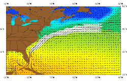 The total worldwide power in ocean currents has been estimated to be about 5,000 GW, with power densities of up to 15 kW/m2. The relatively constant extractable energy density near the surface of the Florida Straits Current is about 1 kW/m2 of flow area. It has been estimated that capturing just 1/1,000th of the available energy from the Gulf Stream, which has 21,000 times more energy than Niagara Falls in a flow of water that is 50 times the total flow of all the world's freshwater rivers, would supply Florida with 35% of its electrical needs. The image to the right illustrates the high density of flow along the coast, note the high velocity white northward flow, perfect for extraction of ocean current energy. Countries that are interested in and pursuing the application of ocean current energy technologies include the European Union,[4] Japan,[5] the United States,[6] and China.[7]
