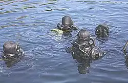 The missions gradually become more comprehensive and different frogman specialities emerged. This led to members of the unit being divided into a clearance diver team and two combat swimmer teams, in 1968. Of the combat swimmer groups, one was based at Ramsund Naval Station in northern Norway, and one was based at Karljohansvern Naval Station in southern Norway.[9]