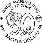 On Sunday, October 3, 1982, the RAI television program Domenica in, hosted by Pippo Baudo, devoted a space to the fifty-eighth Sagra dell'Uva.[29] During the 1983 Sagra a bust of Leone Ciprelli was relocated in the courtyard of Palazzo Colonna. In the same year, more than sixty wineries from Lazio participated in the Exhibition of Typical Wines of the Roman Castles. There was also the issuance of the first special illustrated cancellation for the Sagra dell'Uva by the Italian Postal Service.[29][30]
