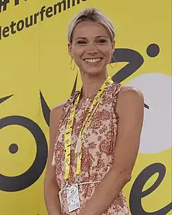Marion Rousse (born 17 August 1991) is a French former racing cyclist. She won the French national road race title in 2012.[2] She announced her retirement from racing in October 2015.[3] Rousse is the cousin of racing cyclists David Lefèvre, Laurent Lefèvre and Olivier Bonnaire.[1] Outside racing, Rousse has also worked as a pundit for Eurosport and France Télévisions.[4][5] Since 2019 she has also served as deputy director of the Tour de la Provence.[6][7] In 2021, she became race director of the Tour de France Femmes.[8]