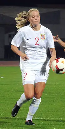 Lund has won 27 caps for Norway women's national football team, while scoring two goals. In October 2007 she was drafted into the senior squad for a match against Russia, aged 18, following an injury to Marit Fiane Christensen.[3] Lund then played for Norway at the 2008 Summer Olympics in China.[4] She also represented Norway in the 2011 FIFA Women's World Cup, where her pace and versatility were praised by the coach,[5] and the 2015 FIFA Women's World Cup.[6]
