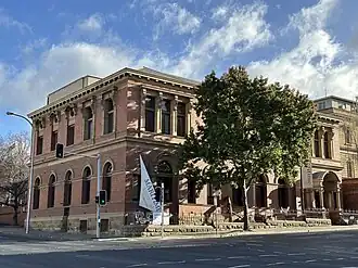 In 1983 the museum relocated into Secheron House (built 1831), a much more appropriate location, and this also allowed the museum to expand. The Tasmanian Government decided to sell Secheron House in 1999, and the Museum took the opportunity to relocate and develop into a major educational institution and public attraction.[9] The museum relocated to its current home, the Carnegie Building, which placed it alongside the docks of Sullivans Cove, in close proximity to both the CBD and the Tasmanian Museum and Art Gallery.[10] The new expanded and modern renovated Carnegie building was opened as the Maritime Museum of Tasmania by Queen Elizabeth II on 28 March 2000.
