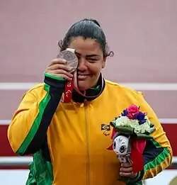 Marivana Oliveira da Nóbrega (born 2 May 1990) is a Brazilian Paralympic athlete with cerebral palsy.[1] She won the silver medal in the women's shot put F35 event at the 2020 Summer Paralympics held in Tokyo, Japan. She also represented Brazil at the 2012 Summer Paralympics held in London, United Kingdom and at the 2016 Summer Paralympics held in Rio de Janeiro, Brazil.[1] She won the bronze medal in the women's shot put F35 event in 2016.[1][2]