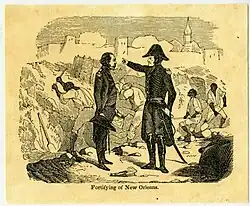 During the War of 1812, General Andrew Jackson imposed martial law in New Orleans.[10][11][12] Upon arriving in the city on December 1, 1814, Jackson encountered a diverse and divided populace, including Anglo-Americans, Creoles, freedmen, and slaves. Concerns about potential disloyalty and panic among residents led him to declare martial law on December 16.[13] Jackson imposed several measures: