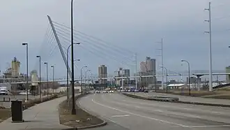 The Martin Olav Sabo Bridge viewed from the south, from around 28th Street. | |