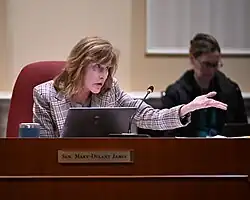 In June 2013, James said that she was considering a run for the Maryland Senate in District 34, after state senator Nancy Jacobs said she would not run for re-election in 2014.[7] At the time, James was the only Democratic member of the Harford County delegation.[8] James filed to run for the state senate seat in November 2013,[9] and faced former state senator Art Helton in the Democratic primary,[10][11] who she defeated in the June 2014 primary election by a 2-to-1 margin.[12] She faced Republican challenger Bob Cassilly in the general election, and sought to position herself as an independent Democrat, noting her votes against gas- and sales-tax increases.[13] James was defeated by Cassilly in the general election on November 3, 2014, receiving 42.7 percent of the vote to Cassilly's 57.2 percent.[14]