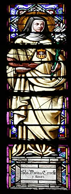 Mary de Cervellione (Catalan: Maria de Cervelló; Mary of Cervellon) (1230 at Barcelona – 19 September 1290) was a Catalan superior of the Third Order of Mercedarians. She is a Catholic saint; her veneration, which began immediately after her death, was approved by Pope Innocent XII in 1692.