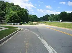 A pair of long S-shaped ramps were constructed from southbound I-295 to southbound MD 210 and from northbound MD 210 to both northbound I-495 and northbound I-295 in Forest Heights in 1989.[33] MD 210 had been widened to a six-lane highway from MD 228 to the Capital Beltway by 1999.[34] MD 228 was extended west from Charles County to MD 210 as a two-lane road in 1995.[35] That highway was expanded to a four-lane divided highway in 2000; in addition, the MD 210–MD 228 junction was reconstructed as the second continuous-flow intersection in the United States.[36][37][38] In 2004, MD 210 achieved its present southern terminus at Potomac Avenue when the highway from there west to the military reservation gate was transferred to the town of Indian Head.[39] MD 210 was reconstructed in Forest Heights starting in 2006 in work related to the construction of the new Woodrow Wilson Bridge.[40] The highway's new bridges over the Capital Beltway and MD 414 and the partial cloverleaf interchange between MD 210 and MD 414 were completed in 2007.[41][42][43]