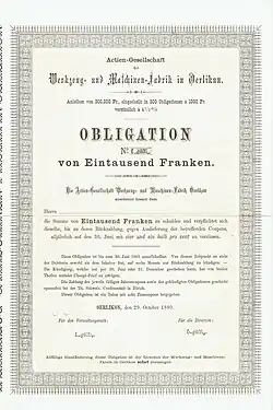 Maschinenfabrik Oerlikon was a Swiss engineering company based in the Zürich district of Oerlikon known for the early development of electric locomotives. It was founded in 1876 as the Werkzeug- und Maschinen-Fabrik Oerlikon by the industrialist Peter Emil Huber-Werdmüller, and occupied a large site immediately to the west of Oerlikon railway station.