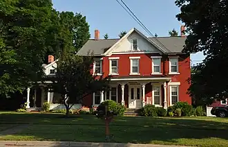 Matthew Warner House is a historic home located at Lima in Livingston County, New York. It was built about 1806 and is a rectangular two story, five bay wide center hall brick residence with a one-story three bay side wing. It was remodeled in the 1860s and in the 1920s. The 1860s remodeling resulted in the picturesque Gothic / Italianate character with the prominent cross cut gable and decorative front verandah. The house was used as an inn in the early 19th century and as a roadside restaurant in the 1930s.[2]