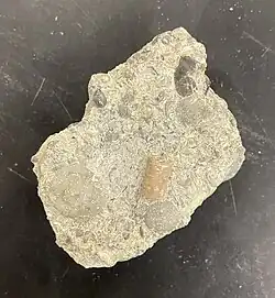 Much of North America was underwater during the Ordovician period, therefore the Bellevue formation was formed from shallow water deposits consisting mostly of shale.[2] Within the layers of shale, brachiopod fragments are prevalent, and commonly vinlandostrophia are found. There are many small crinoid stems because of the deposits that came from the shallow water in the most recent years of the Ordovician. The base of the formation contains a large collection of echinoderms.[3] Crinoids are a part of the echinoderm phylum. There are larger fragments of bryozoa as well as vinlandostrophia in comparison to the Fairview and Kope formations,[2] which can be found in the lower and base portions of the formation.