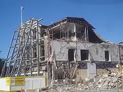 After the 2010 and 2011 Christchurch earthquakes caused damage to the building, it was demolished in 2015 but the facade was restored and earthquake-strengthened.[1] In November 2011, $1 million was granted from the Christchurch Heritage Building Fund to save the facade and support it, as the building itself was being demolished.[2]