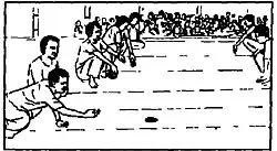 Players use a slippery, oiled coconut (ꯌꯨꯕꯤ, yubi[15]) as a ball in the Meitei traditional game of Yubi Laakpi (ꯌꯨꯕꯤ ꯂꯥꯛꯄꯤ), literally meaning "coconut snatching".[16] The coconut is hard to hold because it is smooth and oily, making the game more difficult. Players try to pass, carry it, but it often slips or bounces in unexpected ways, making the game more fun and challenging. This is common in rural areas or during festivals.[2]