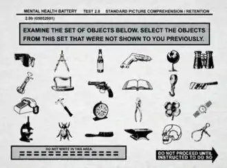 The Limited Edition DVD is packaged to look like Leonard's case file from a mental institution, with notes scribbled by "doctors" and Leonard on the inside.[52] The DVD menus are designed as a series of psychological tests; the viewer has to choose certain words, objects, and multiple choice answers to play the movie or access special features.[52] Leonard's "notes" on the DVD case offer clues to navigating the DVD. Some of the "materials" seem designed to induce paranoia and uncertainty (a picture of one person whispering to another is captioned, "They know what you did"), alluding to Shelby's mental state.