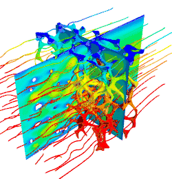 Metal foams are used in compact heat exchangers to increase heat transfer at the cost of reduced pressure.[5][6][7] However, their use permits substantial reduction in physical size and fabrication costs. Most models of these materials use idealized and periodic structures or averaged macroscopic properties.