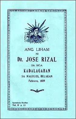 Mga kababayang dalaga ng Malolos (English: To my countrymen, the young women of Malolos), also known by its alternative English title To the young women of Malolos, is a letter written by Filipino author and political reformer José Rizal on February 22, 1889. It is written in Tagalog and is addressed to a group of women from Malolos, Bulacan who successfully lobbied the Spanish colonial government to allow them to open a school so that they could study the Spanish language.