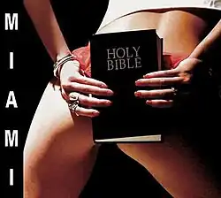 Saez has the habit of provoking controversy in media and society with his album covers notably for J'accuse that depicted a nude woman on a shopping cart. Miami was no exception as its front cover depicted a woman's buttocks covered by a Holy Bible. The back cover showed a huge penis covered by US one hundred-dollar bills with Miami Beach in the background.[2]