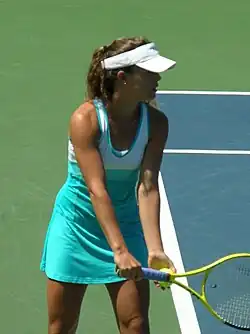 On 16 July 2008, she nearly won the best victory of her career, narrowly losing to former world No. 1 player, Serena Williams, in three sets.[6] The day before, she had beaten world No. 34, Gisela Dulko, in straight sets.[7]