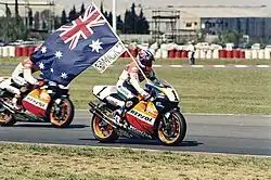 Doohan was made a Member of the Order of Australia (AM) in 1996 and received an Australian Sports Medal in 2000.[12][13] He was awarded the "Key to the City" by the City of Gold Coast in 1997.[14] He was inducted into the Sport Australia Hall of Fame in 2009.[15] The first turn at Phillip Island Grand Prix Circuit is named after him.