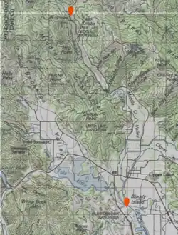 The Middle Creek watershed is underlain by the Franciscan Complex, a chaotic assembly of sediments and ocean floor scraped up by the advancing North American Plate. Rocks include greywacke sandstone, mudstone, greenstone, and blueschist. The Clear Lake basin lies between the watersheds of the Sacramento River and the Russian River. When it was formed about 600,000 years ago it flowed east into the Sacramento Valley. About 200,000 years ago the Clear Lake Volcanic Field blocked its outlet.[3] The lake rose until it found a new outlet, draining west through the Blue Lakes into Cold Creek and the Russian River.[4] At some time in the last 10,000 years a landslide at the west end of the Blue Lakes blocked this outlet, the lake rose again, and created its present outlet via Cache Creek to the Sacramento River.[5]