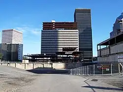 Midtown Plaza is a city district in downtown Rochester, New York. The site was originally occupied by an indoor shopping mall designed by Victor Gruen and opened in 1962. Although it was primarily promoted as a retail space, Gruen's vision was for the plaza to function as an all-purpose community space to revitalize the downtown area. The original mall was closed in 2008 after a decline in retail activity and partially demolished. Since 2010 the site has been redeveloped with new buildings and an open lot known as Parcel 5.