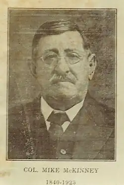 - ^ a b c d "Obituary for Colonel Mike McKinney (Aged 83)". The Atlanta Constitution. August 11, 1925. p. 4. Retrieved February 5, 2025.