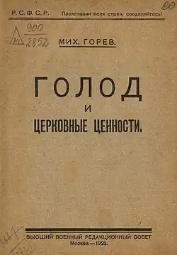 Since March 1922, Galkin took part in the work of the “commission for accounting and concentration of values” headed by Leon Trotsky. On March 11, the Politburo of the Central Committee of the RCP (b) issued a resolution introducing Galkin to the commission for the confiscation of valuables from Moscow churches (“Commission for the confiscation of valuables in the Moscow province”). Since March 20, Galkin was part of the so-called. "Literary Commission" at the Bureau of the Central Scientific and Cultural Center. Galkin, together with Krasikov, on behalf of the “Commission under the Agitation Department of the Central Committee on the issue of leaflets and brochures on the campaign for the confiscation of church valuables,” participated in the work of the “editorial troika.” In the spring and summer of 1922, the GPU attracted Galkin “as a consultant” to the process of preparing and organizing a schism in the ranks of the Orthodox Church. On May 18, the leadership of the GPU sent a letter to Trotsky with a request to allow the use of Galkin “as a consultant on spiritual affairs.” On May 29, the Organizing Bureau of the Central Committee of the RCP (b), having heard the question “About the work of Comrade Gorev-Galkin,” decided: “Do not object to combining the work of Comrade Gorev-Galkin with Comrade Trotsky with work in the SO (Secret Department) of the GPU as consultant on clergy affairs." The head of the VI department of the GPU SO, Evgeniy Tuchkov, in a report on July 24 addressed to the head of the GPU SO, Timofey Samsonov, mentioned that the renovationist Higher Church Administration for the Affairs of the Orthodox Russian Church acts in accordance with Galkin's directives. From June to November 1922, a newspaper was published (and until September, a magazine of the same name) under the general title “ Science and Religion ,” of which Galkin was the executive editor; these publications were supposed to contribute to causing a split in the ranks of the Orthodox clergy. From the beginning of the 1920s, Galkin was one of the party workers included in the nomenklatura register of the Central Committee of the RCP (b). Until 1926, Mikhail Galkin-Gorin conducted active propaganda work in the “ Atheist ” system; until June 1926, he served as deputy chairman of the executive bureau of the Central Council of the Union of Militant Atheists of the USSR, receiving high praise from the leadership. However, from the autumn of 1925 to the spring of 1926, Galkin became embroiled in a conflict within the leadership of the Union of Militant Atheists. In April 1926, Gorev (Galkin) wrote a letter of resignation. The Executive Bureau of the Central Council of the Security Council at a meeting on April 1, 1926, under pressure from Emelyan Yaroslavsky, decided: “to relieve Comrade Gorev from the duties of Deputy [m]. Prev. Executive Bureau and in general from any regular work in the Central Council of the S.B. USSR.” After this, Gorev tried to find support from the leadership of the Bolshevik Party, but to no avail.