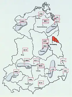 | 5th Rocket Brigade (5th RBr)[12] | Bruno Leuschner (26 February 1971) | Stallberg (square), from 1977 Demen (53°37′51″N 11°45′39″E / 53.630920°N 11.760780°E) |