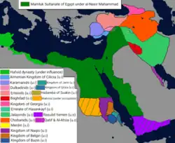 - ^ a b Levanoni, Amalia (1995). A Turning Point in Mamluk History: The Third Reign of Al-Nāṣir Muḥammad Ibn Qalāwūn (1310-1341). Brill. ISBN 978-90-04-10182-1, pp. 111–112.