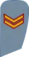 | Plutonier maior | Plutonier | Sergent | Caporal | Fruntaș | Soldat | |||||||||||||||||||||||||||||||