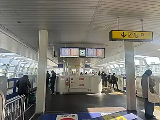 In fiscal 2019, the Hankyu station was used by an average of 46,939 passengers daily and the Osaka Monorail portion was used by 31,198 passengers daily.[4]