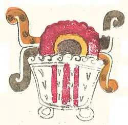 The use of mirrors in Mesoamerican culture was associated with the idea that they served as portals to a realm that could be seen but not interacted with.[2] Mirrors in pre-Columbian Mesoamerica were fashioned from stone and served a number of uses, from the decorative to the divinatory.[3] An ancient tradition among many Mesoamerican cultures was the practice of divination using the surface of a bowl of water as a mirror. At the time of the Spanish conquest this form of divination was still practiced among the Maya, Aztecs and Purépecha.[3] In Mesoamerican art, mirrors are frequently associated with pools of liquid; this liquid was likely to have been water.[4][nb 1]