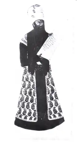 Born in 1754, Mirza Bozorg was from the village of Hazava in the Farahan County, near the city of Arak. His family were part of the intellectual and literary aristocracy that had long served Iran's ruling dynasties. Mirza Bozorg first started working for the Zand dynasty with the encouragement of his uncle Mirza Husayn, who was in charge of managing his upbringing. Mirza Bozorg later began serving as a secretary in the divan of Agha Mohammad Khan Qajar (r. 1789–1797), the founder of the Qajar dynasty (1789–1925). When Mirza Bozorg finished his study at Najaf in Ottoman Iraq, he went back to Iran and joined the court of Agha Mohammad Khan's successor Fath-Ali Shah Qajar (r. 1797–1834). There he initially served as a secretary of the prime minister Hajji Ebrahim Shirazi, and later as the minister of the prince Hossein Ali Mirza, who governed the capital of Tehran.[2] In 1798, Mirza Bozorg became the minister of the newly elected crown prince Abbas Mirza, as well as the deputy to the prime minister Mirza Shafi Mazandarani. As a sign of Mirza Bozorg's important position as the crown prince's minister, Abbas Mirza gave him the honorific title of qa'em maqam-e sedarat-e uzma ("deputy to the grand chancellor", Qa'em-Maqam I for short) in 1810.[2][3]