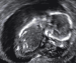 | An ultrasound showing a gestational sac containing a yolk sac but no embryo | |