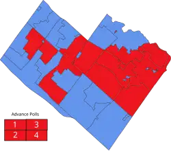 Winning party in each polling division of Mississauga—Erin Mills at the 2022 Ontario general election