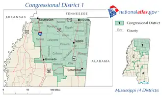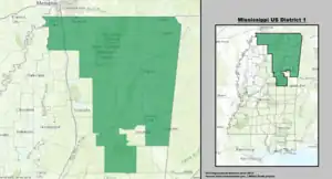 Mississippi's 1st congressional district is in the northeast corner of the state. It includes much of the northern portion of the state including Columbus, Oxford, Southaven, Tupelo, Olive Branch, and West Point. The University of Mississippi (Ole Miss) is in the district.