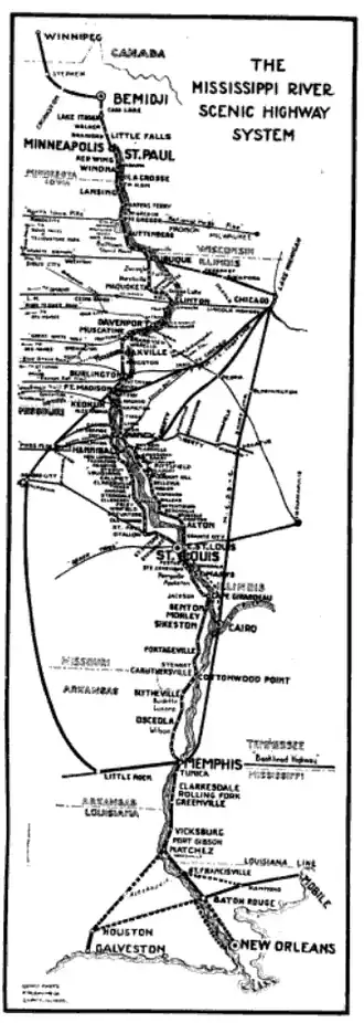 - ^ a b c Vant Hul, J.C. Jr. (July–August 1920). "The Mississippi River Scenic Highway". See America First. Vol. 6, no. 5. pp. 60, 70 – via Google Books.