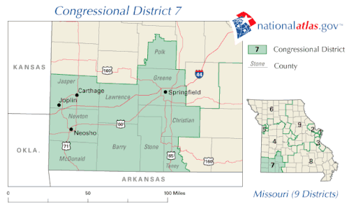 The district is currently represented by Republican Eric Burlison of Ozark.[3]